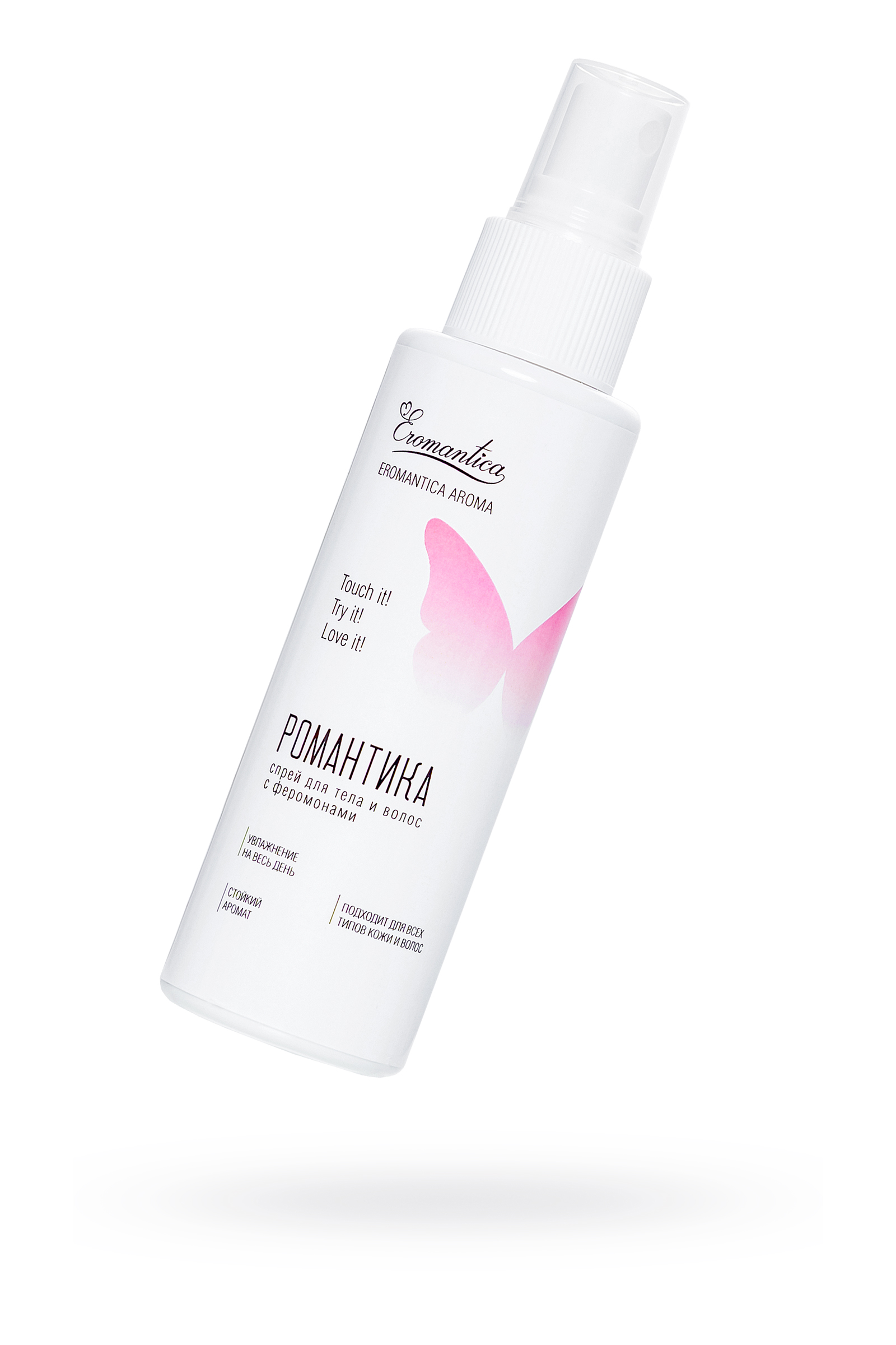 Поднимает настроение до небес, дарит ощущение легкости и очарования. Благодаря природным феромонам и легкому аромату летнего свидания ты становишься особенно привлекательной в глазах противоположного пола и чувствуешь уверенность в любой компании с новым спреем из коллекции Эромантика Aroma «Романтика». Освежает, увлажняет, тонизирует лицо, тело и волосы.