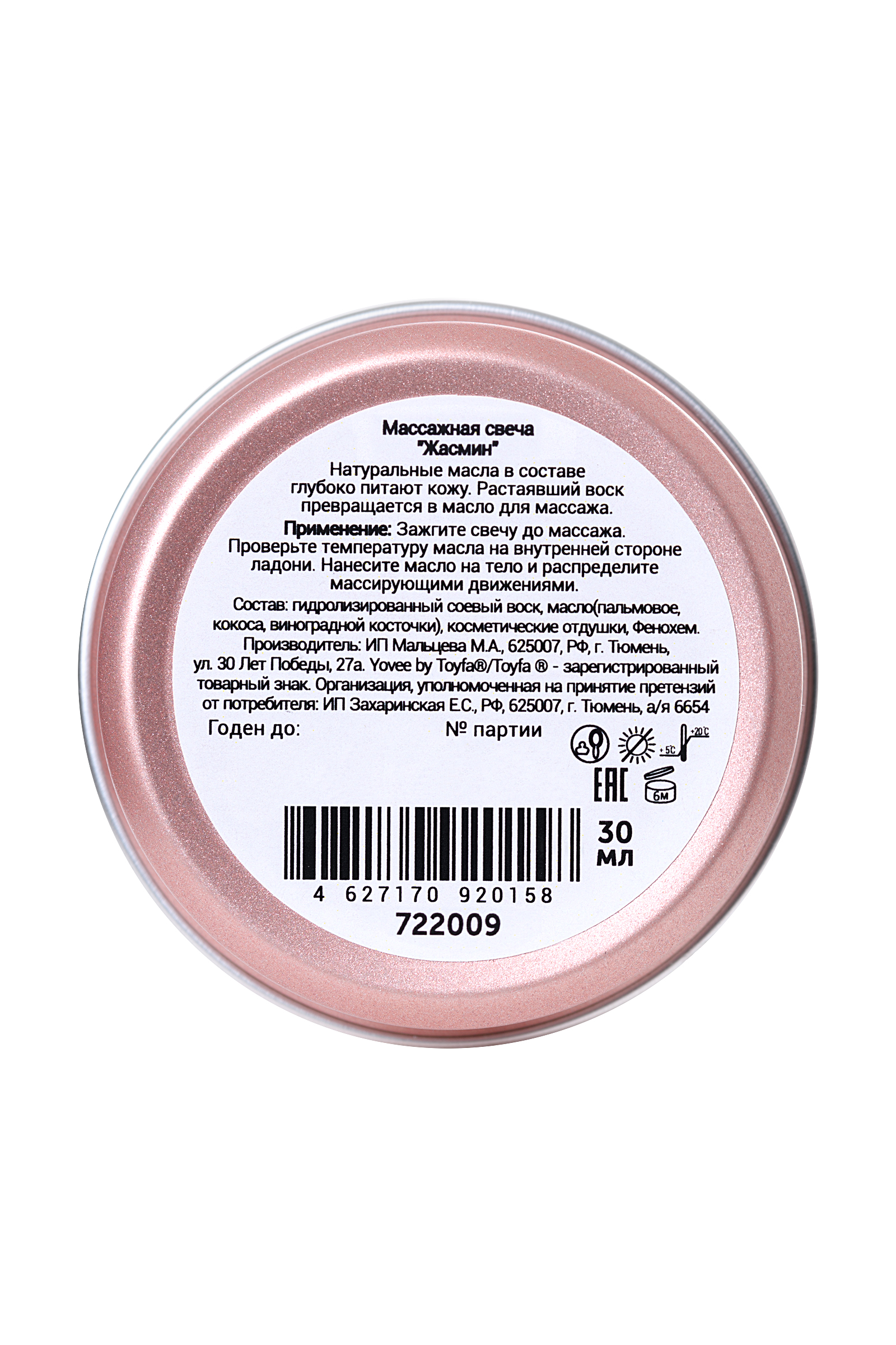 Свеча массажная Ёви «Цветочный массаж» с ароматом жасмина. Натуральные масла в составе глубоко питают и увлажняют кожу. Растаявший воск превращается в масло для массажа. Свеча поможет подготовить вашу кожу к свиданию.Подготовьтесь к свиданию: После приятной и расслабляющей ванны зажгите свечу. Насладитесь цветочным ароматами жасмина, который наполнит вашу комнату. Зажгите свечу и немного подождите, пока масло остынет. Нанесите масло на всё тело и сделайте лёгкий, расслабляющий массаж. После питательных масел ваша кожа будет мягкой и нежной.Свеча подарит незабываемые ощущения, после которых вам гарантированы нежные и мягкие прикосновения!Применение: Зажгите свечу до массажа. Когда образуется достаточно количество масла, потушите её. Проверьте температуру масла на внутренней стороне ладони, при необходимости дайте маслу немного остыть. Нанесите разогретое масло на тело и массирующими движениями распределите по телу. Наслаждайтесь ароматом и бархатной кожей!